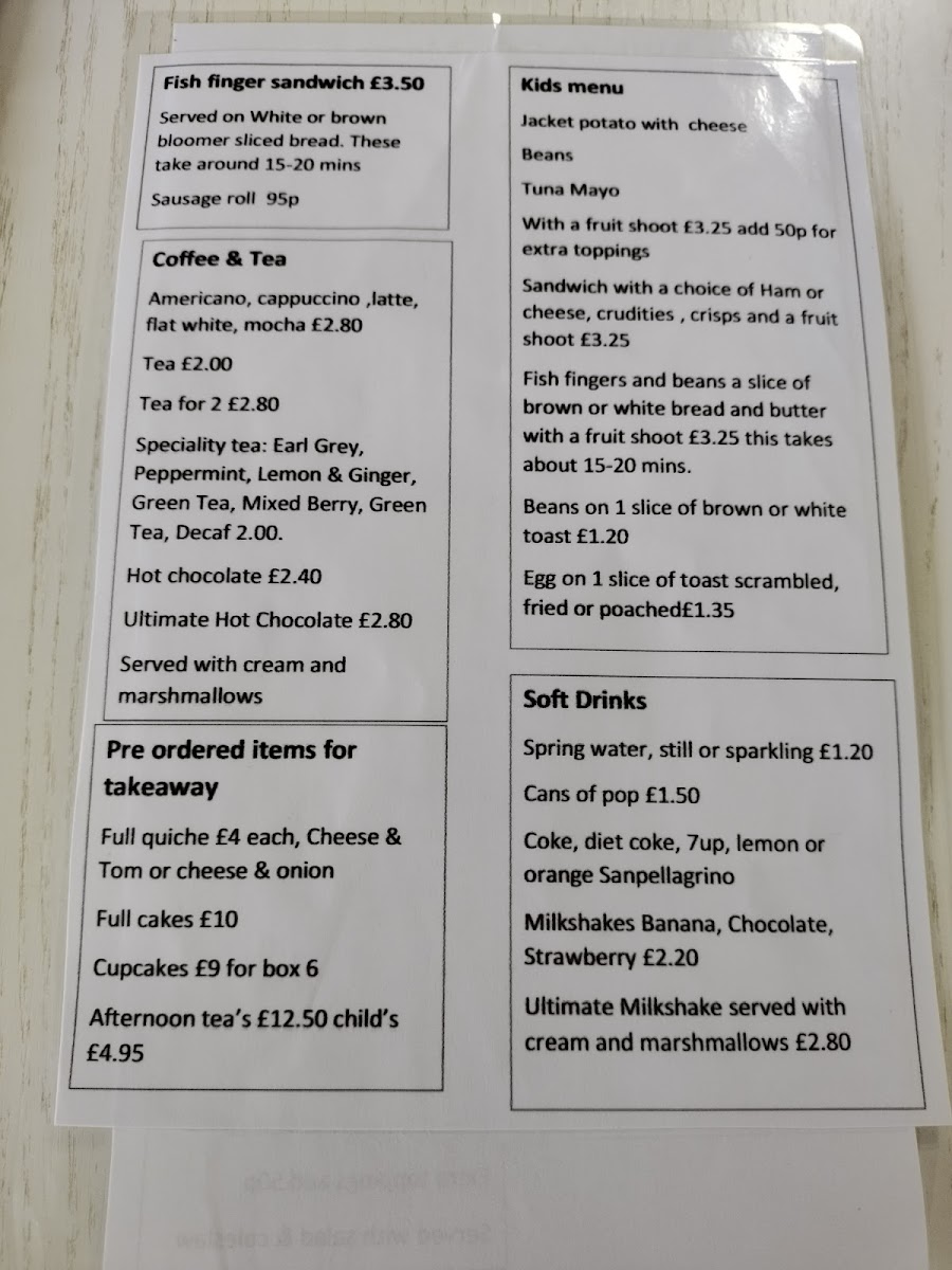 Ria's cafe Menu